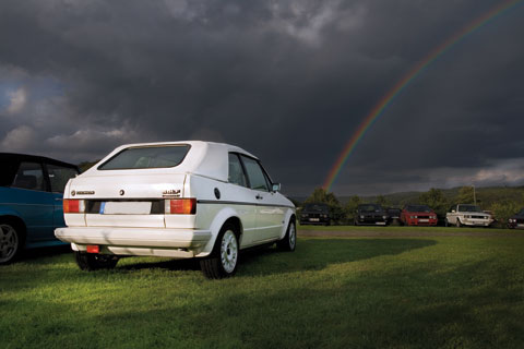 Das Cabrio ist Baujahr 1986. Es handelt sich um ein Sondermodell Quartett, bei dem man durch 4 Grundfarben für Lack, Innenausstattung und Verdeck 64 mögliche Farbkombinationen erhalten konnte.